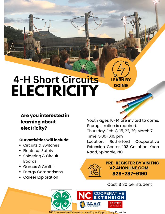 Call 828-287-6190 for more information.4-H Short Circuits ELECTRICITY